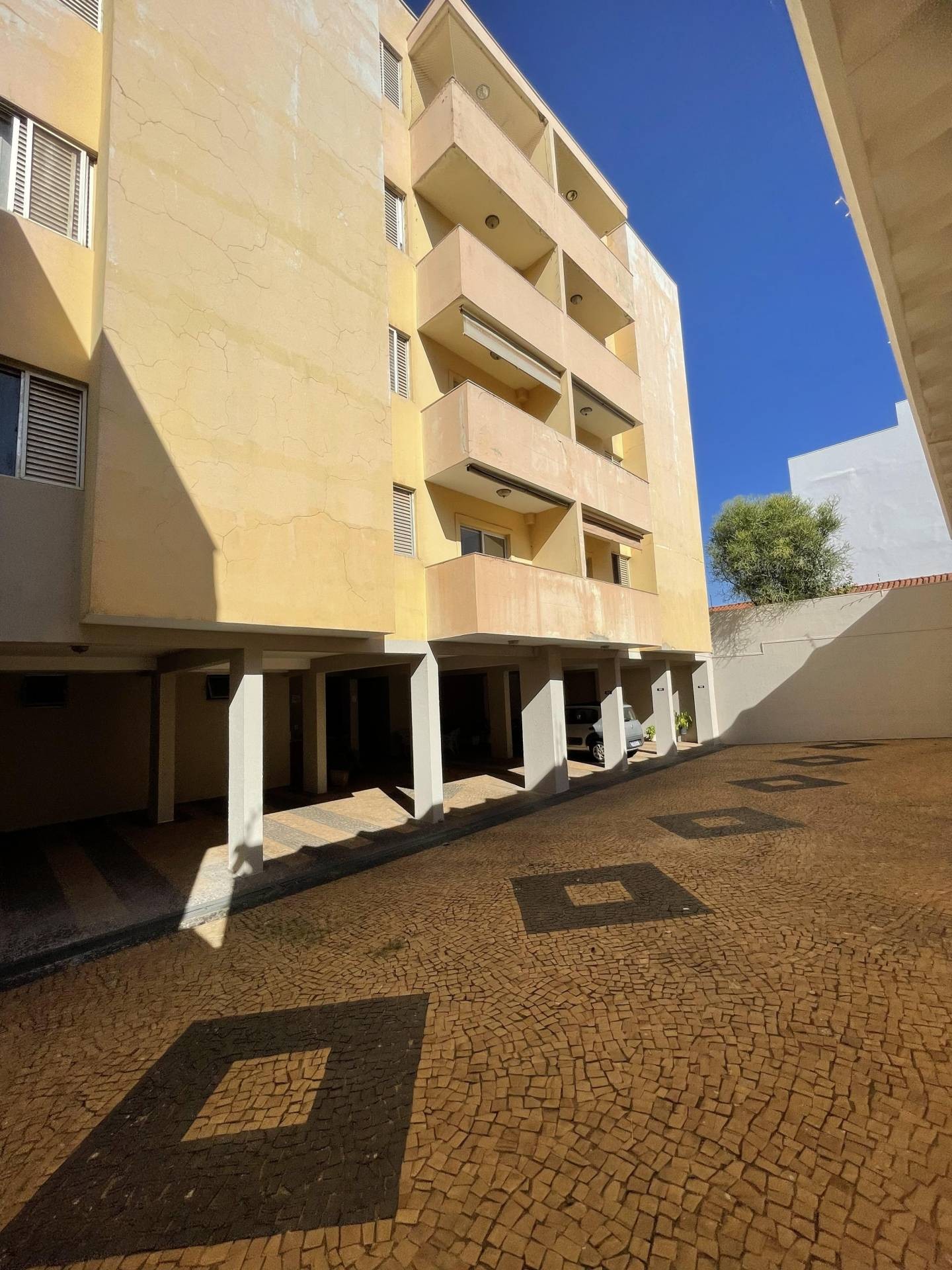 Apartamento com 2 dormitórios c/ a/e, sala, cozinha, w.c. social, lavanderia e garagem com portão eletrônico.