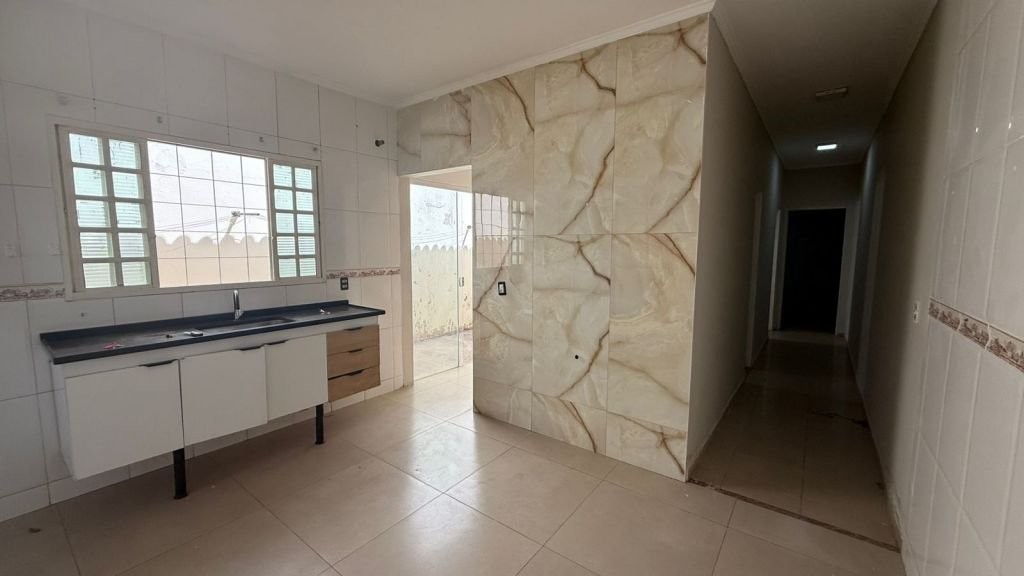 Residência com 2 quartos, sala, cozinha, w.c social, lavanderia, churrasqueira e garagem