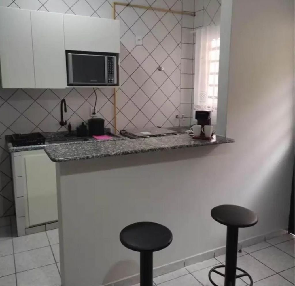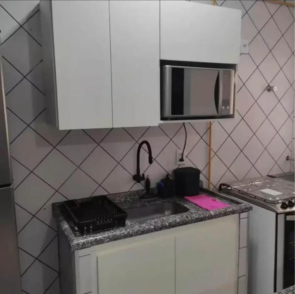 Apartamento completo em mobília e ventilador de teto, com 1 dormitório com cama e armário embutido, sala com rack, tapete e sofá, cozinha com armário embutido, fogão, microondas e geladeira, w.c. social e lavanderia. Não tem garagem. Condomínio inclui água e gás.