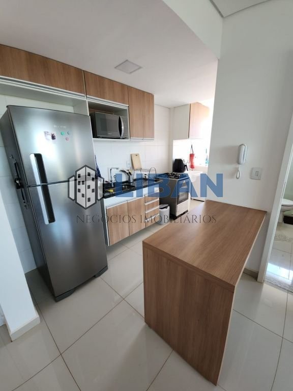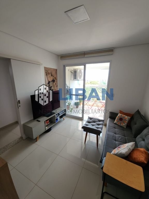 01 quarto com cama e guarda roupa ,janela blackout e ar condicionado 01 cozinha com armários ,microondas ,geladeira, fogão .air frayr 01 lavanderia com maquina de lavar 01 sala sendo 2 ambientes com uma mesa , raque ,sofá , 01 banheiro com blindex 01 pia com espelho na parte de fora do banheiro 01 sacada fechada com blindex ,pia e churrasqueira . IPTU