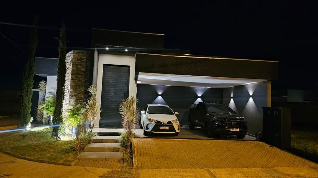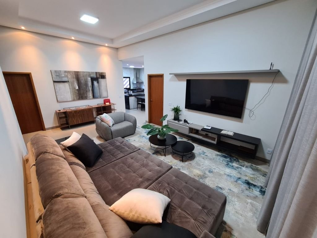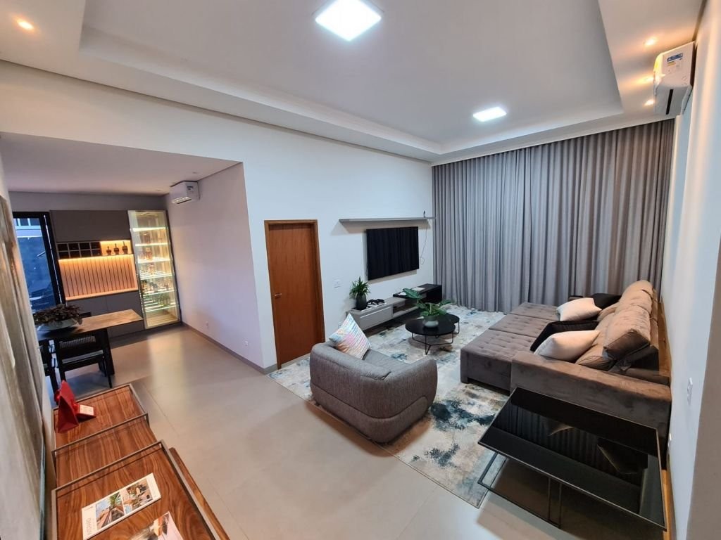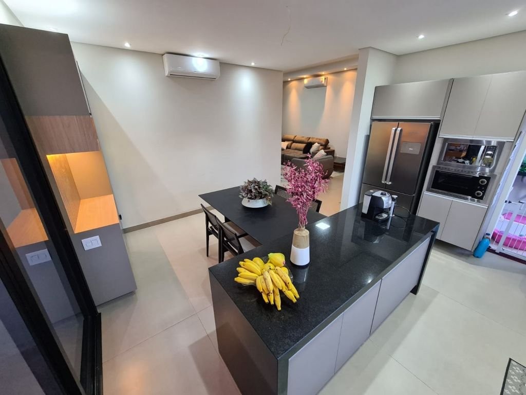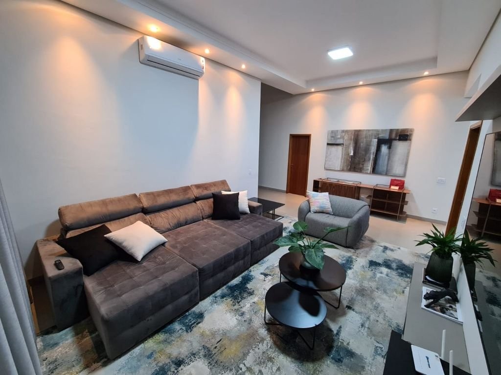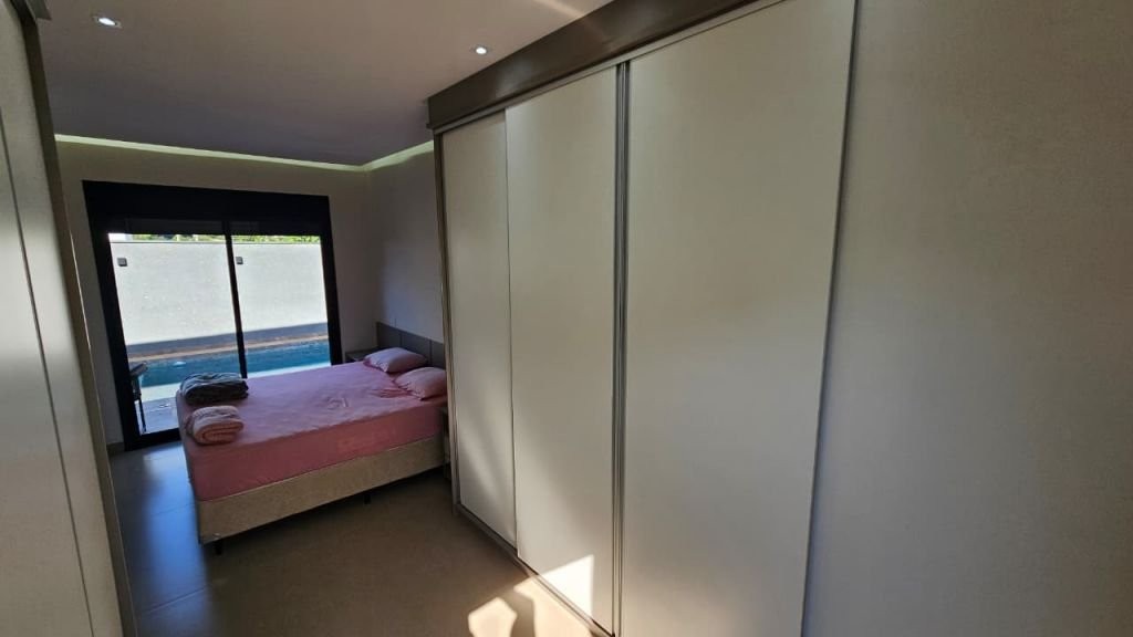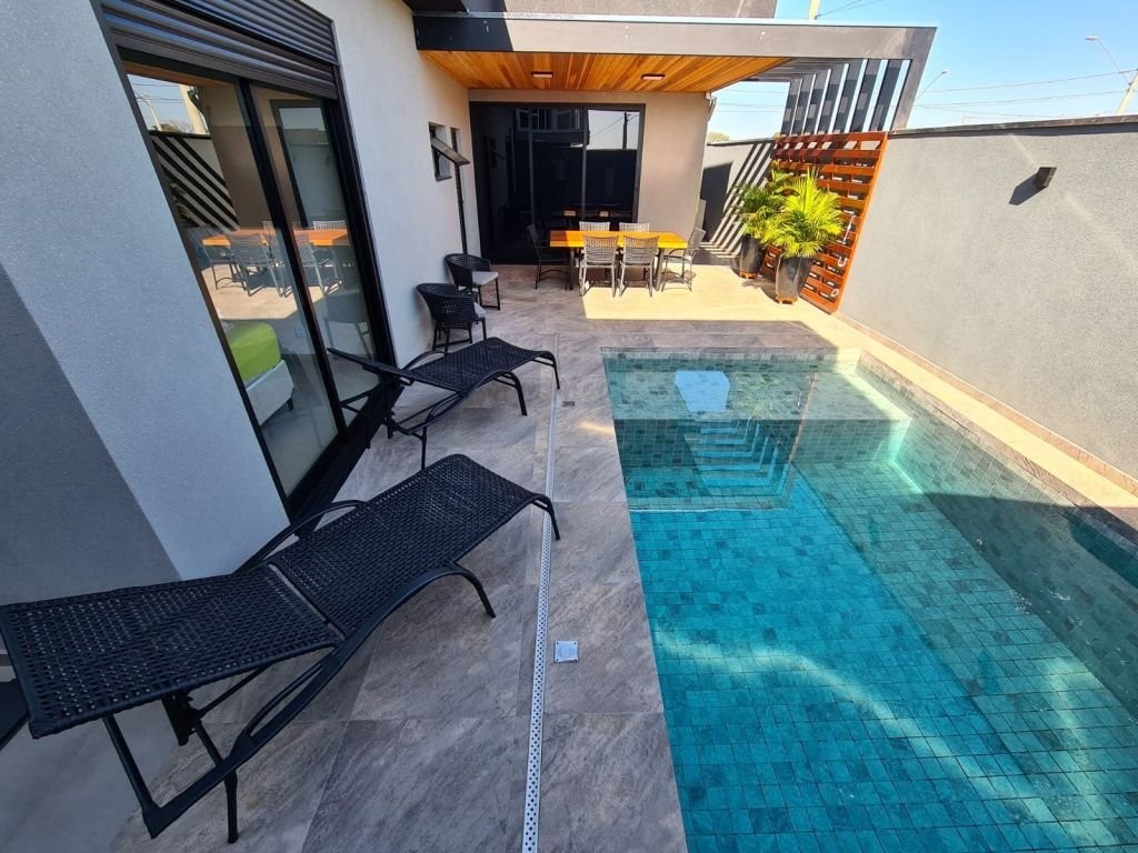 Com mobília 3 suítes completas Armários planejados Ar-condicionado instalado Sala Cozinha integrada Escritório logo na entrada (ideal para home office) Garagem espaçosa * Lazer e conforto: Piscina aquecida com hidromassagem Casa com acabamento em porcelanato em todos os ambientes * Sustentabilidade e economia: Sistema fotovoltaico (energia mais barata) Aquecimento solar de água nos banheiros e cozinha * Dimensões: Área construída: 205 m² Terreno: 344 m² * Localização privilegiada: Na avenida principal do residencial A apenas 2 quadras da portaria A 2 quadras da área de lazer