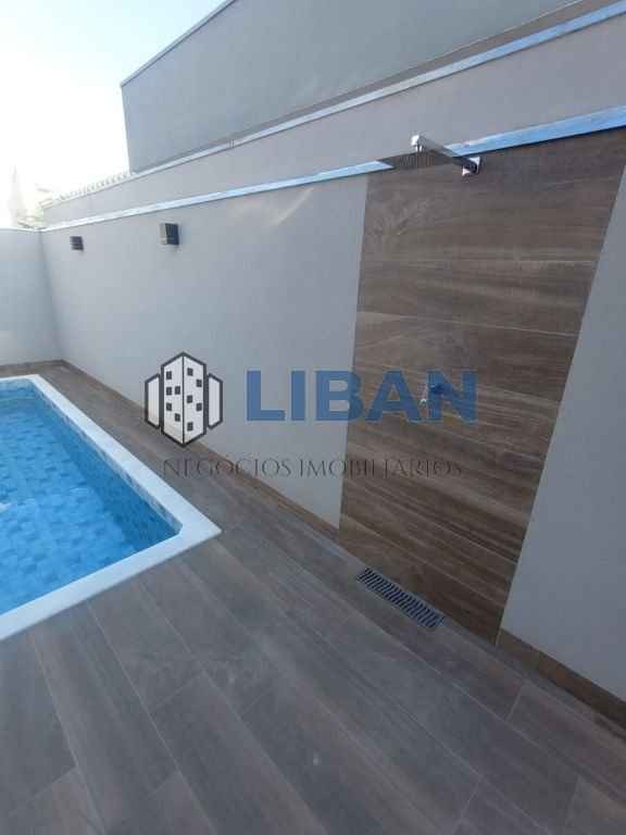 Casa toda em granito São Gabriel com terreno de 360m² com 194m² de construção, possuindo: Entrada com uma espaçosa sala, logo em seguida um linda cozinha com churrasqueira, balcão central de mármore e pia que em baixo será colocado armários. 3 suítes sendo 1 Master com espaço para closet e todos belos banheiros com pia e chuveiro e box de vidro, sendo o da Master com 2 chuveiros no mesmo box. A casa possuí total de 5 banheiros com os dos quartos, 1 para visitas e 1 na área de lazer com box de vidro. Área de lazer com piscina tem LED e hidro e tudo preparado pra receber sistema de aquecimento d #039;água, ducha e uma pequena área verde. Área de lazer que tem acesso pelas duas laterais da casa. Escritório. Lavanderia, quarto de despejo. Garagem para 4 carros sendo 2 cobertas