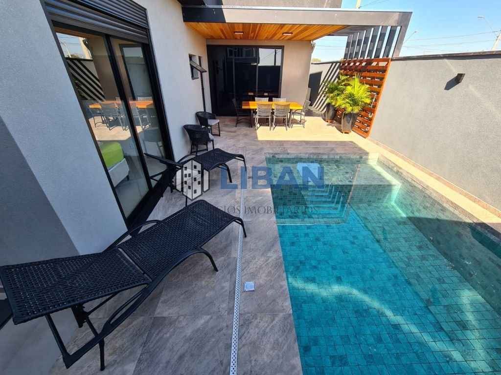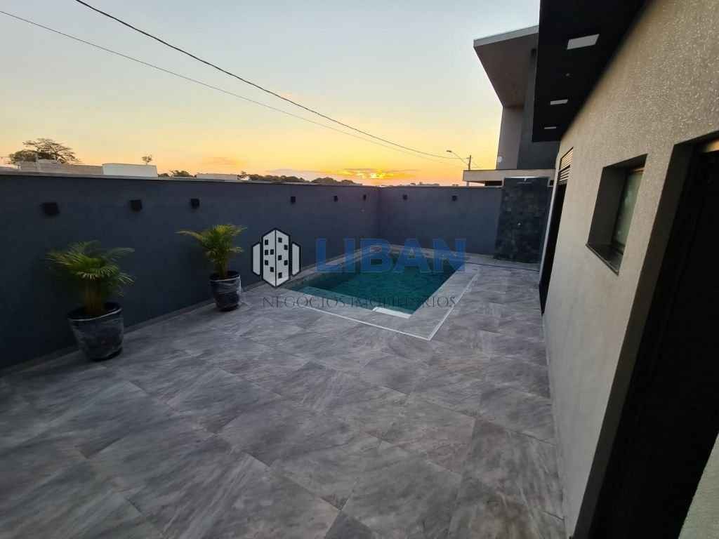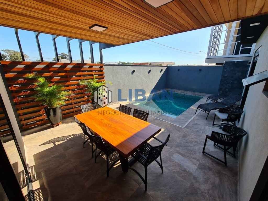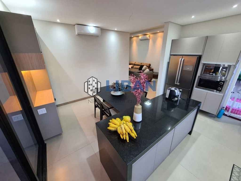 Casa belíssima, possuindo 3 suites com armários, ar condicionado. Roupeiro de apoio no corredor entre as suites. Escritório logo na entrada. Sala ampla 02 ambientes, climatizada Cozinha gourmet ampla com ilha, já tem coifas, forno e micro-ondas, ar condicionado e armários planejados Lavanderia ampla com armários. Piscina de 5m x 3m aquecida. Aquecimento de água na casa toda. Móveis planejados completos. Piso porcelanato Incepa 1.20 x 1.20 Pé direito alto. Duas vagas de garagem cobertas 2 descobertas.