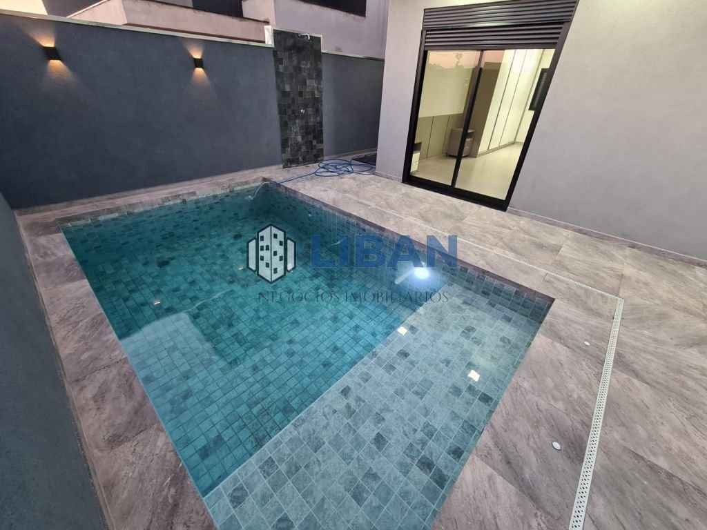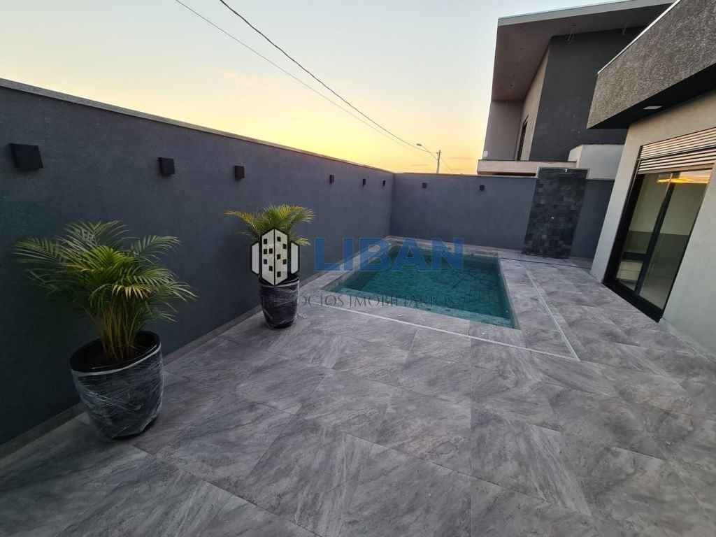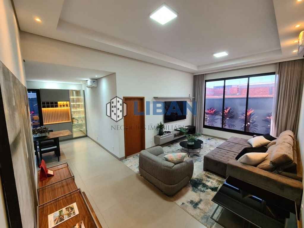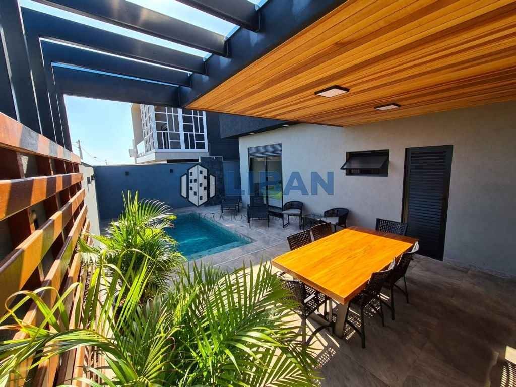 Casa belíssima, possuindo 3 suites com armários, ar condicionado. Roupeiro de apoio no corredor entre as suites. Escritório logo na entrada. Sala ampla 02 ambientes, climatizada Cozinha gourmet ampla com ilha, já tem coifas, forno e micro-ondas, ar condicionado e armários planejados Lavanderia ampla com armários. Piscina de 5m x 3m aquecida. Aquecimento de água na casa toda. Móveis planejados completos. Piso porcelanato Incepa 1.20 x 1.20 Pé direito alto. Duas vagas de garagem cobertas 2 descobertas.