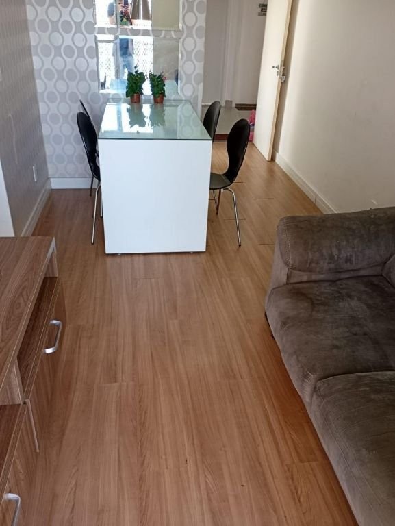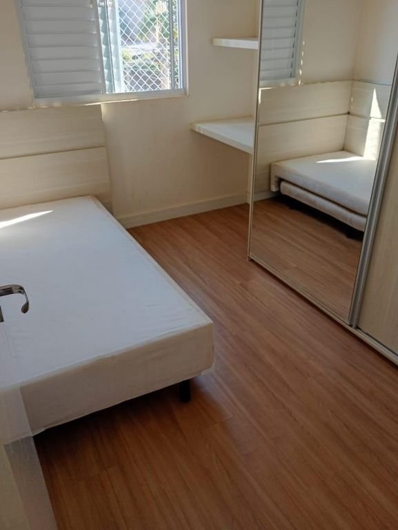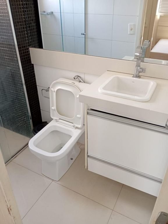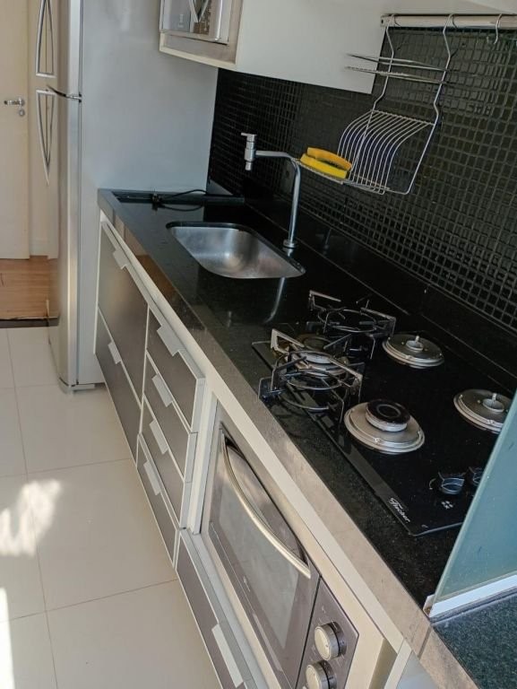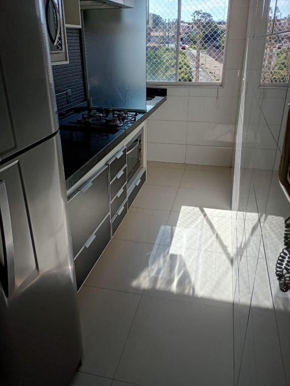 Apto 4º andar, todo mobiliado * Sacada. * Rede de proteção na sacada e todas as janelas. * Completo em móveis planejados. * Armários na cozinha, quartos, banheiro, sala e lavanderia. * Gesso sala. * Moldura roda teto em todos os cômodos. * Iluminação. * Piso laminado c/ rodapés nos quartos, sala e corredor. * Porcelanato na cozinha, banheiro, lavanderia e sacada. * Revestimentos na cozinha e banheiro. Cozinha: - Completa em Armários. - Cook Top 4 bocas c/ acendimento automático. - Coifa inox embutida. - Forno Elétrico inox embutido. - Microondas inox embutido. - Geladeira Inox. Lavanderia: - Completa em Armários. - Bancada de Mármore c/ Tanque inox embutido. - Vidro jateado que separa a cozinha da lavanderia. Sala: - Painel TV c/ Rack e Gavetas. - TV 32 polegadas. - Sofá Retrátil 2 lugares. - Papel de Parede. - Espelhos. - Mesa c/ 4 Cadeiras. - Luminária metálica pendente sobre a mesa. - Plafons Retangulares embutido no gesso. - Spots de Iluminação. - Plafon Quadrado embutido no gesso do corredor. Quarto Solteiro: - Completo em Armários. - Cama c/ Cama Auxiliar. - Painel de Cabeceira e lateral. - Bancada p/ Escritório Home Office. - Plafon Quadrado na Iluminação. Quarto Casal: - Completo em Armários: - Cama Box Casal. - Painel Embutido na Cabeceira. - Painel TV. - Mesa Cabeceira. - Luminária Preta pendente sobre a Mesa de Cabeceira. - Nicho de Cabeceira. - Papel de Parede. - Plafon Quadrado na Iluminação. Banheiro: - Completo em Ármario. - Mármore c/ pia embutida. - Vaso sanitário com Ducha Higiênica. - Espelho até o teto. - Spots de Iluminação. - Box de vidro. - Pastilhas pretas na área do banho. - Chuveiro elétrico de parede Lorenzetti Acqua Ultra Storm preto.