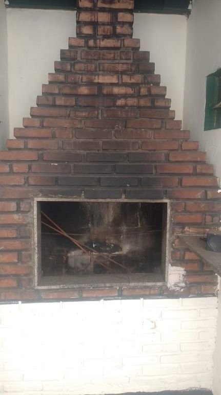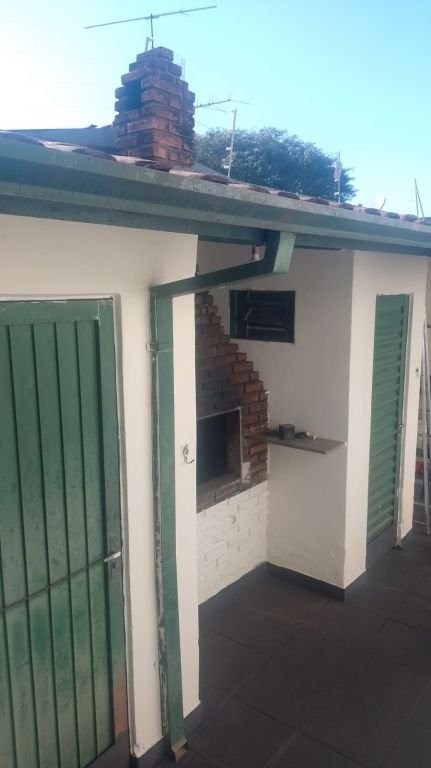 Imóvel com 3 dormitórios, sendo um suíte, sala de estar, sala de jantar, banheiro social, cozinha, área de serviço, quarto dispensa, churrasqueira, um banheiro externo e uma cobertura pequena.