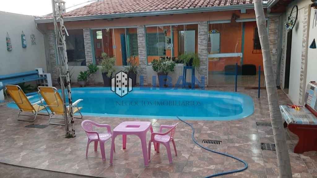 Casa com 02 dormitórios 02 banheiros sala cozinha americana área gourmet com churrasqueira piscina pomar amplo quintal garagem