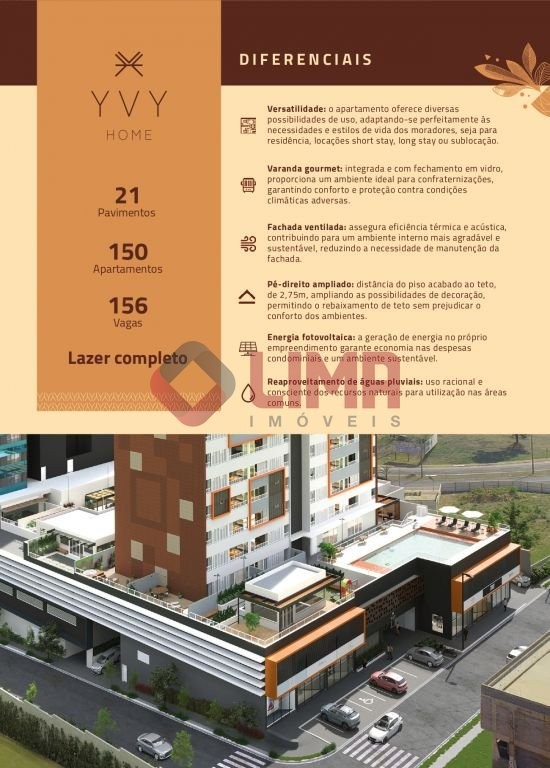 LANÇAMENTO DINAMICA - YVY HOME, Bauru/SP 02 Suites com 60m² 01 Vaga de Garagem - Versatilidade: o apartamento oferece diversas possibilidades de uso, adaptando-se perfeitamente às necessidades e estilos de vida dos moradores, seja para residência, locações short stay, long stay ou sublocação. - Varanda gourmet: integrada e com fechamento em vidro, proporciona um ambiente ideal para confraternizações, garantindo conforto e proteção contra condições climáticas adversas. - Fachada ventilada: assegura eficiência térmica e acústica, contribuindo para um ambiente interno mais agradável e sustentável, reduzindo a necessidade de manutenção da fachada. - Pé-direito ampliado: distância do piso acabado ao teto, de 2,75m, ampliando as possibilidades de decoração, permitindo o rebaixamento de teto sem prejudicar o conforto dos ambientes. - Energia fotovoltaica: a geração de energia no próprio empreendimento garante economia nas despesas condominiais e um ambiente sustentável. - Reaproveitamento de águas pluviais: uso racional e consciente dos recursos naturais para utilização nas áreas comuns.