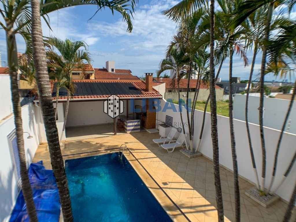 Na parte superior: 02 dormitórios com armários, ventilador de teto, com varanda de frente para piscina, mais uma suíte com armários e sala, banheiro, sala de tv; Na parte de baixo: escritório na frente que pode ser comercial, copa, cozinha repleta de armários, sala de jantar, sala de estar, lavabo, lavanderia com armários, banheiro de serviço, despensa, quintal, churrasqueira, banheiro, piscina aquecida, garagem para 04 carros ou mais