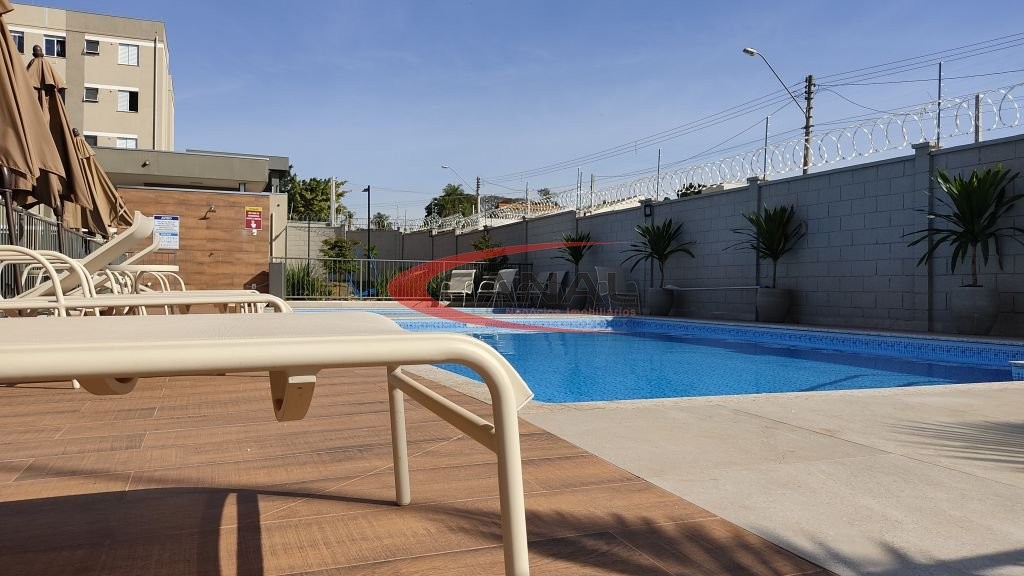 Excelente apartamento com dois dormitórios sendo 1 com ventilador de teto (piso laminado), sala para dois ambientes com ventilador de teto, cozinha, área de serviço, banheiro com box, piso cerâmico e 1 vaga de garagem coberta. Portaria remota 24hs / Área de lazer com 2 piscinas (adulto e infantil), playground, quiosque com churrasqueira e forno, quadra poliesportiva, aparelhos para treino funcional ao ar livre, mercado online e poço artesiano! Próximo a supermercados, lojas de conveniências, postos de combustível, ponto de ônibus, escolas..... Agende sua visita!