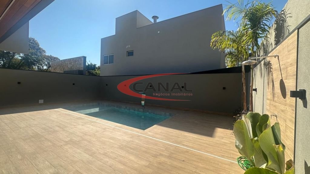Lindo sobrado novo, projeto arrojado e moderno, alto padrão de acabamento, pé direito duplo, completo e armários em todos os cômodos, totalmente climatizado, contendo no piso térreo: com sala para três ambientes, uma suíte, podendo ser utilizada também como escritório, cozinha com formo, fogão, forno micro ondas, área gourmet conjugada, com churrasqueira elétrica, piscina aquecida com cascata, banheiro para piscina, área de serviço com banheiro e quarto de despejo, garagem para dois veículos coberto, mais 02 descoberto, piso superior: 04 dormitório, sendo 02 suíte, uma com closet com uma grande sacada, sala de TV, banheiro social que atende dois dormitórios, janelas e portas elétricas e todos os dormitórios, aquecedor solar para todos os cômodos, jardins nos corredores laterais. fechadura da porta de entrada eletrônica. Corretor responsável - Canal - Celular de contato (014) 9 8116-0838 - Agende uma visita!