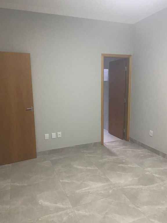 Residencial padrão novo, fino acabamento, pé direito alto, com 3 quartos sendo um suite, sala, cozinha americana, lavanderia, churrasqueira e garagem com portão eletronico.